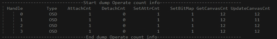 MI_RGN_GetCanvasInfoandMI_RGN_UpdateCanvascall counts are paired. On channels with OSD stitching, if an OSD continuously obtains canvas, other OSDs' calls toMI_RGN_GetCanvasInfowill exit and print errors and warnings in the serial port. Can confirm further by checking serial port logs (DualOS needs to use commandcat /proc/dualos/logto get RTOS-side logs). The phenomenon is OSD not refreshing -