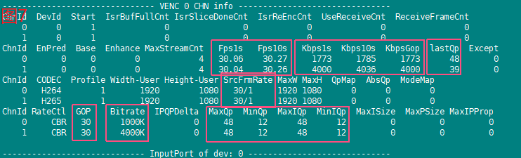 | Get encoding Proc h264/5 pipeline information | cat /proc/mi_modules/mi_venc/mi_venc0 |