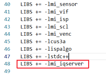 LIBS += -lmi_iqserverto the last line ofsdk/verify/sample_code/source/iford/vif/sensor_demo/sensor_demo.mk.