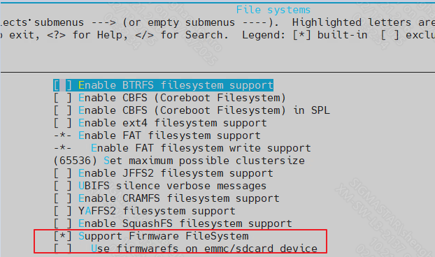如果存储介质使用的是emmc,需把Use firmwarefs on emmc/sdcard device也选中,否则不可选中。
