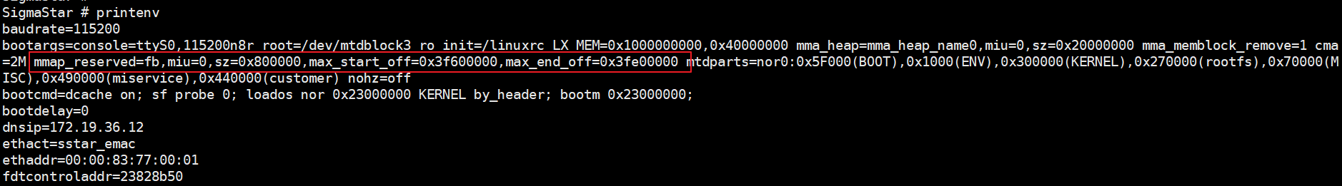 上述设定完成后,可在烧录完成的板端查看对应的uboot环境变量。如下图所示: