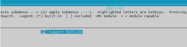 Misc options ----> BOOTLOGO----> Support BOOTLOGO