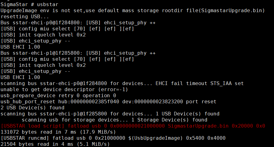 然后执行usbstar即可进行U盘升级,升级完成后会自动重启。