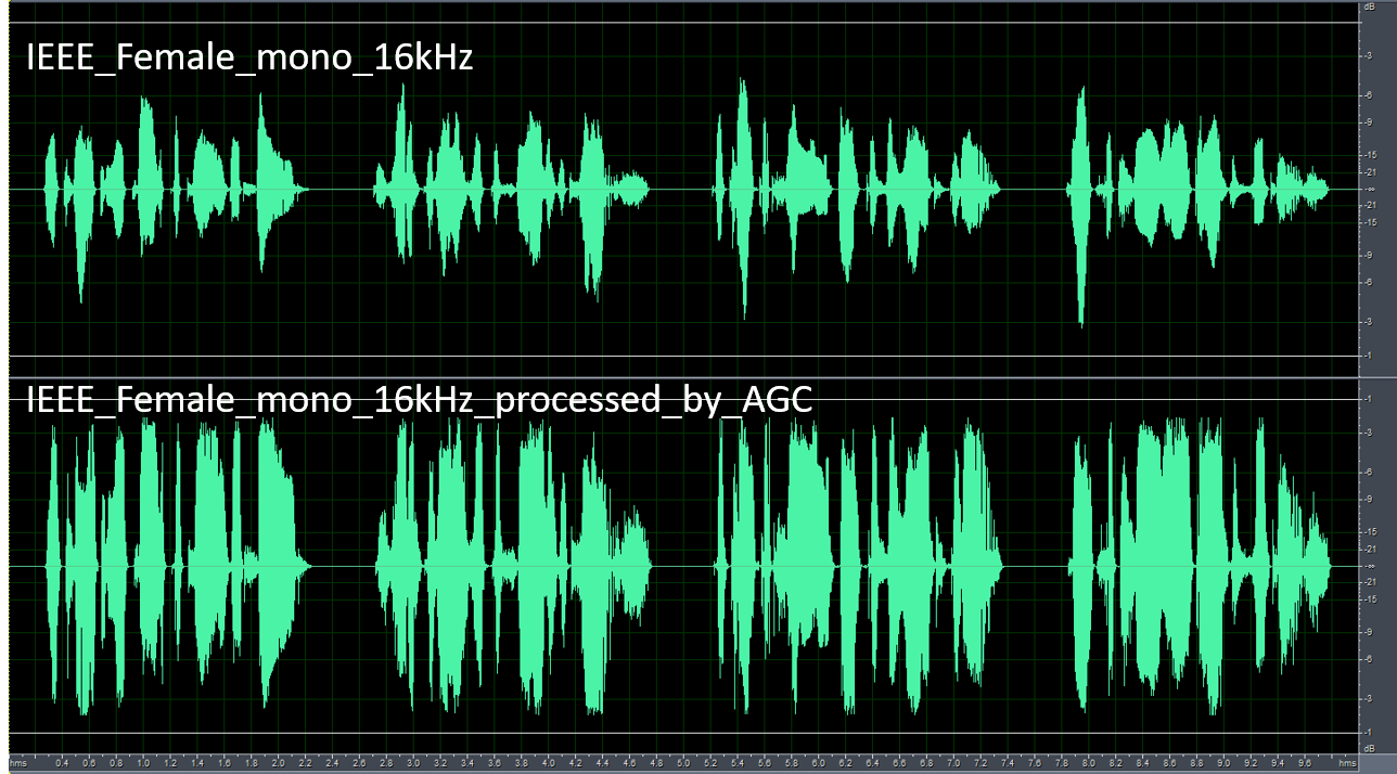 根据设定压缩率曲线参数,计算输入讯号能量并自动调整增益并应用在输入讯号上,保持信号稳定。