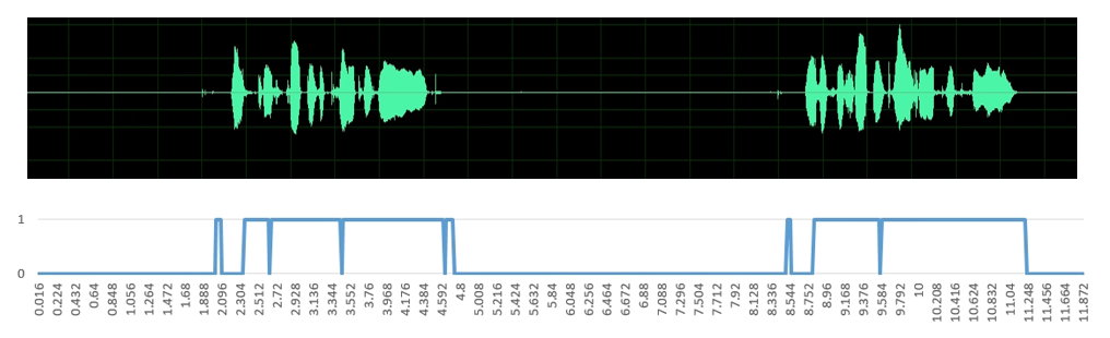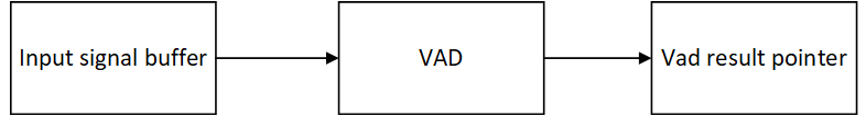 当VAD算法配置好内存、完成参数初始化与设定后,VAD只需要输入讯号Buffer,并将输入讯号Buffer按设定参数与算法处理后,将侦测结果输出到VAD输出结果指针。