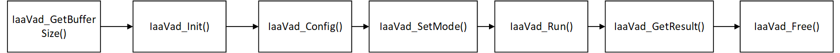 使用VAD API获取VAD算法运行需要的内存大小、初始化VAD算法handle、配置参数至VAD算法handle、配置运行模式至VAD算法handle、运行VAD算法与释放VAD算法资源。