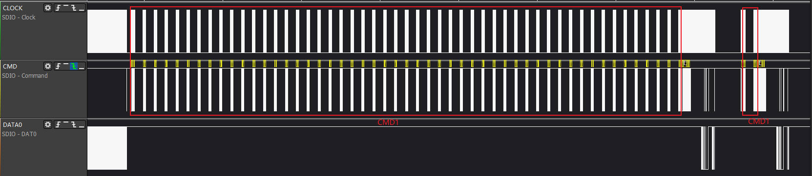 如上图,在执行从eMMC设备加载数据时,会先进行初始化操作,其中cmd1会一直轮询,直到eMMC设备准备好后才会往下执行,该部分耗时比较大。