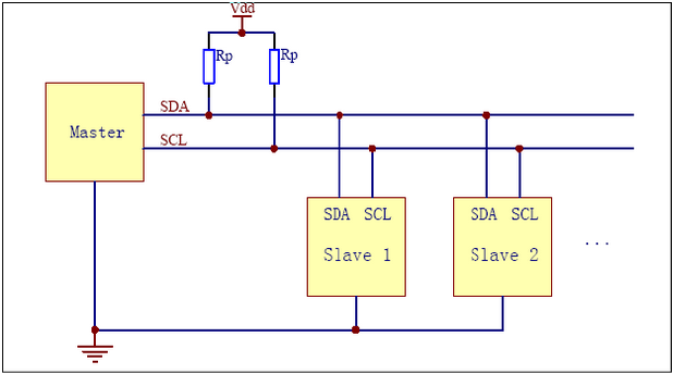 并且,遵从I2C标准协议,在总线的SDA与SCL上面必须要接入外部上拉,这是因为I2C通讯需要输出高电平的能力,而当器件输出为开漏输出时,是无法输出高电平的,这时就需要外部上拉的帮助,借此实现“线与”功能,决定最终电平。