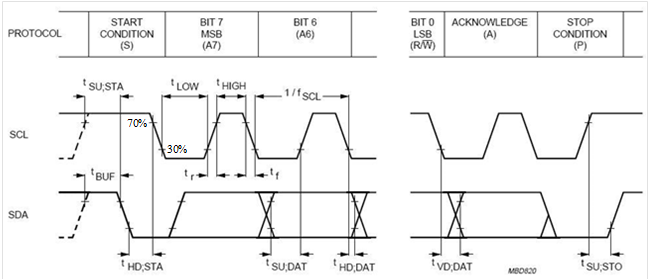 | 外部上拉 | I2C总线上必须要接外部上拉 |