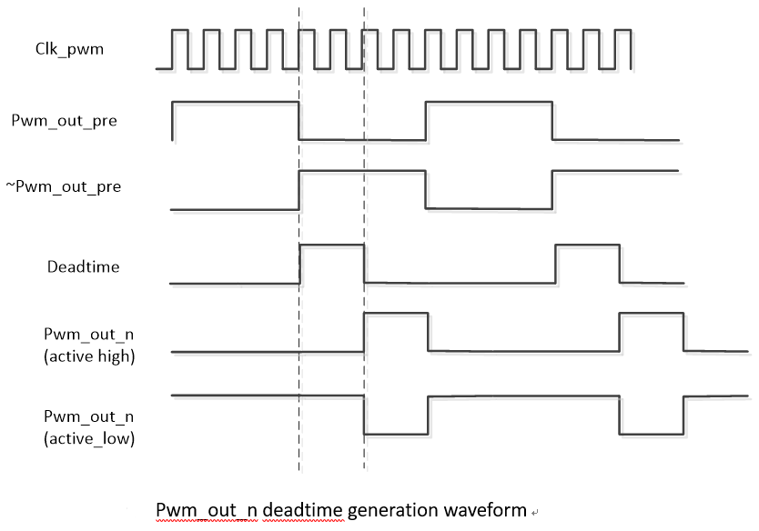 PWM 死区时间(Dead Time)是指在PWM信号切换过程中,两个相邻的输出信号之间存在的时间间隔。它用于防止功率开关器件(如MOSFET或IGBT)在切换过程中同时导通,从而避免短路和损坏。该功能仅pcupid支持。