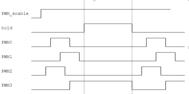 支持hold功能,即同Group内的PWM会在完成当前周期的波形后暂停,常用于改变波形的设定,可设定暂停时间内的高低电平