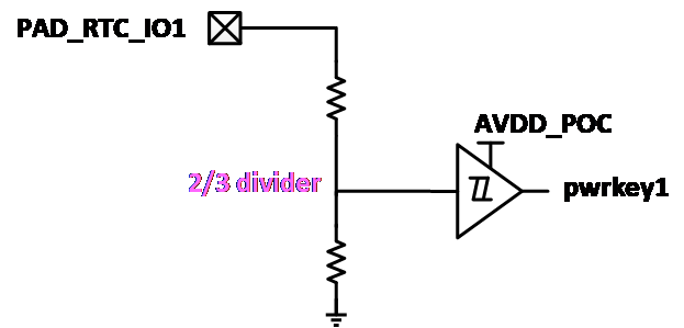 PAD_RTC_IO1 只有下拉(PD)的配置,不支持软件更改。内部框图为: