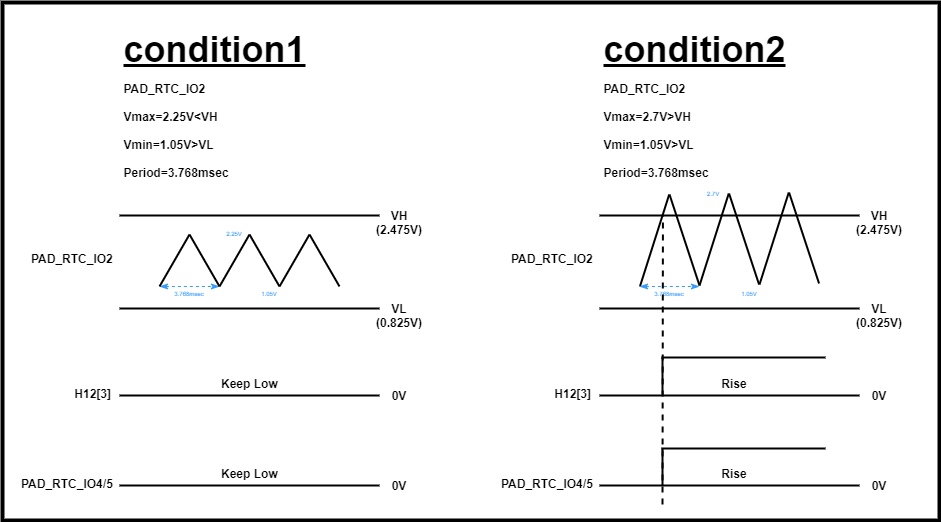 | PAD_RTC_IO2 | CMPH | rise | >VIH | rise | rise | |