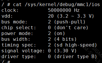 另外驱动提供sysfs进行debug,进入/sys/devices/soc0/soc/{reg}.sstar_sdmmc1目录下可进行操作: