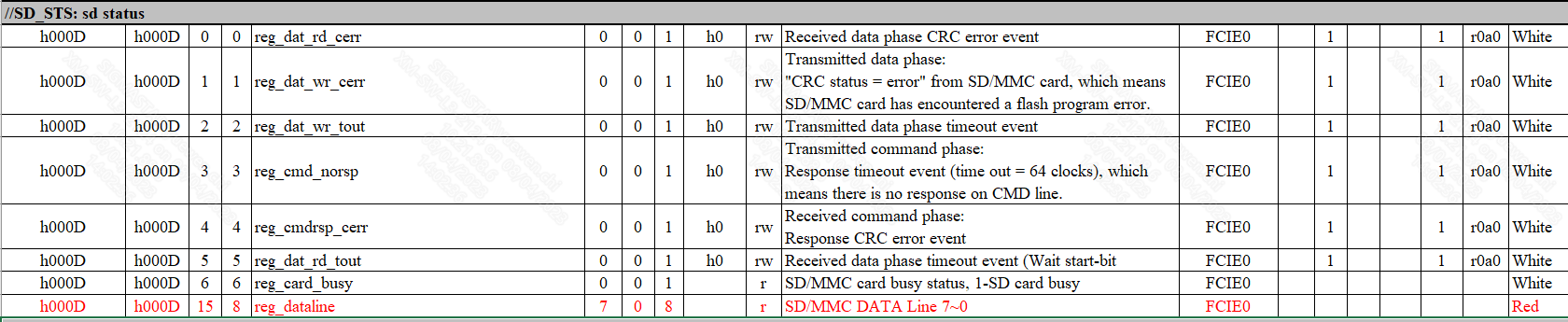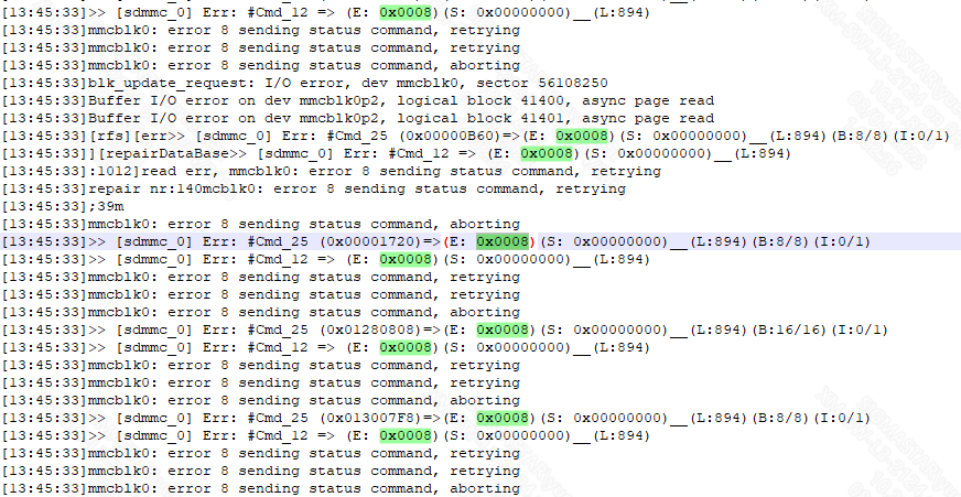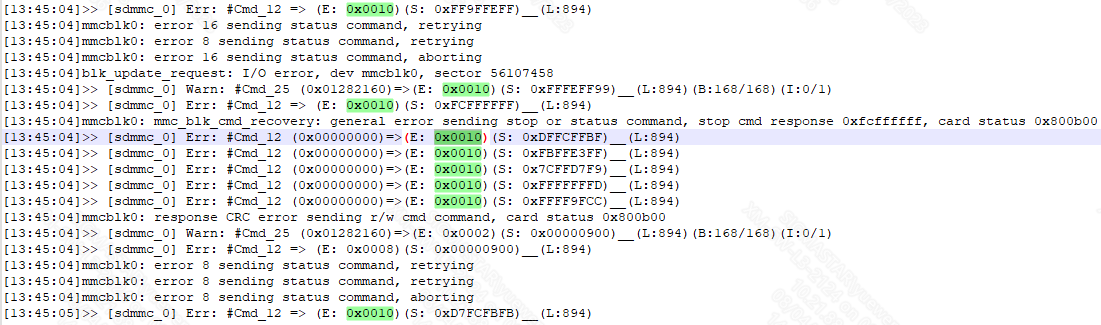 可以根据驱动报错log中的(E: 0xXXXX)信息查找对应的SD卡状态来判断目前卡出现了什么问题。