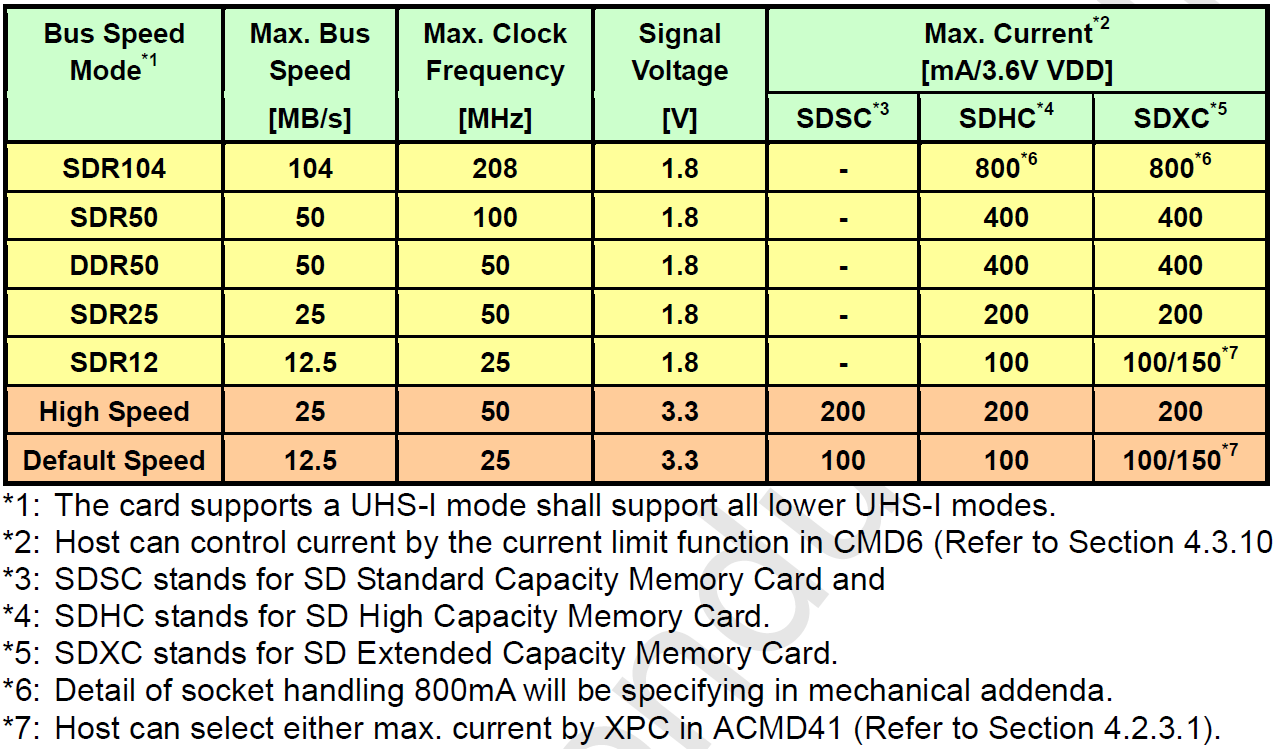 注:SD卡读写受命令及其响应的传输时间,卡busy时间,停止命令时间等多重因素影响,实际读写速率是低于其理论速率的; 读写速度测试应该测试应用层的读写带宽,即传输一个大文件进行测试。