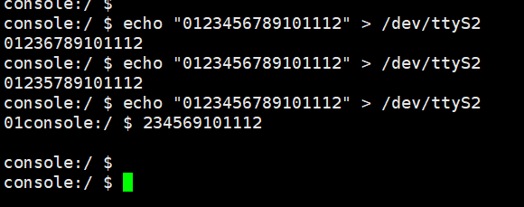 stty -F /dev/ttyS2 speed 9600 -icanon -echo cat /dev/ttyS2 & echo "0123456789101112" > /dev/ttyS2