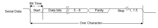 | ALL UART | 1 bit | 5 bits;6 bits; 7 bits; 8 bits | Y/N | 1 bit; 1.5 bits |