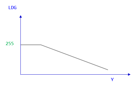 依据motion调整最终edge强度增益,值域范围:0 ~ 255,横轴为motion,越右边越偏静,纵轴为edge增益(128 = 1x),值越大则edge越强。以sharpness的API内的这个参数为例,此功能只会作用在横轴的最左边,也就是index = 0的地方(u8GainByMot[0])。