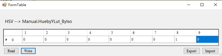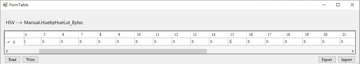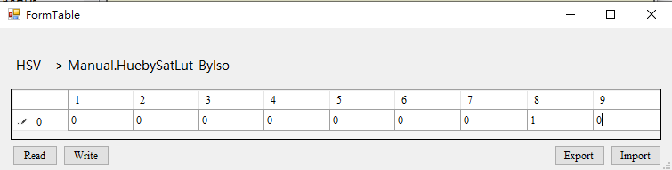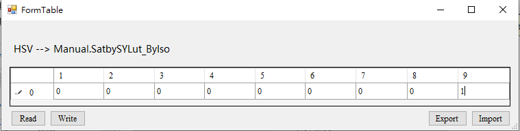 点选按钮以后,弹出表格窗口,如下图窗口内有表格,点选Read按钮以后可以读取板子内的值,点选Write按钮,可将值写入板子。