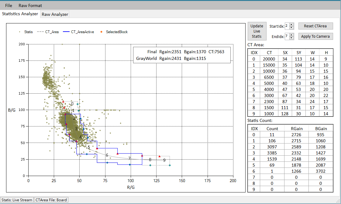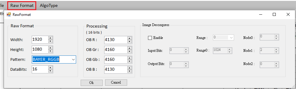 连接上板子以后,可以透过点选红色虚线标注的按钮,获取撷取图像的四种格式,如下图。