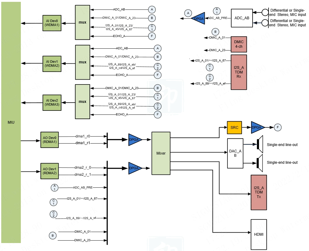 AI的Interface是对audio codec音频输入外设接口的抽象,如Amic/Dmic/I2S/HDMI等接口。
