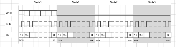 Slot表示I2S 传输的声道数,目前I2S模式下支持2slot,Tdm模式下支持4/8slot (Mochi系列和Souffle系列支持16slot)。