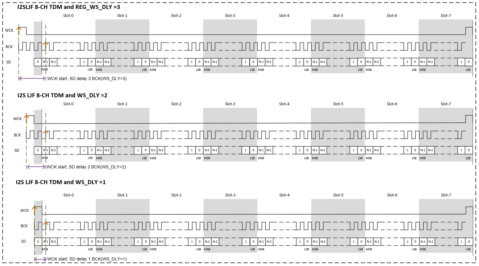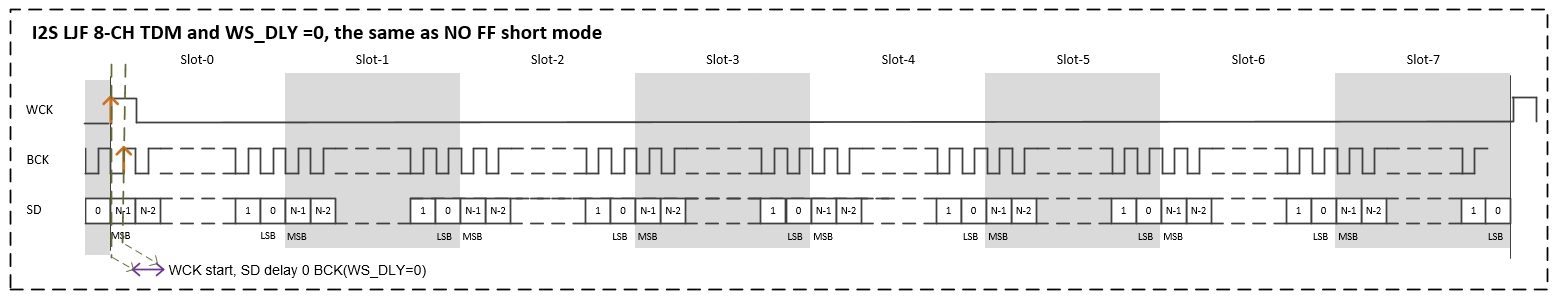 LEFT-MSB: I2S左对齐格式bI2sSync I2S RX和TX是否共用clock(仅interface为I2S Tx时有效)