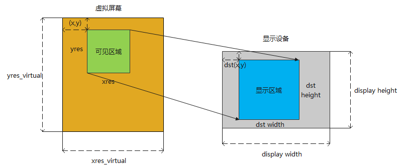 成员名称 描述 支持情况 u32XPos 图层在屏幕上的原点横坐标。 支持 u32YPos 图层在屏幕上的原点纵坐标。 支持 u32DstWidth 图层在屏幕上的显示宽度 支持 u32DstHeight 图层在屏幕上的显示高度 支持 u32DisplayWidth 显存分辨率的宽。 支持 u32DisplayHeight 显存分辨率的高。 支持 u32ScreenWidth 屏幕显示分辩率的宽。 支持 u32ScreenHeight 屏幕显示分辩率的高。 支持 bPreMul FB 中的数据是否为预乘数据。 支持 eFbColorFmt FB的像素格式。 支持 u32SetAttrMask 设置图层信息时参数修改掩码位。 支持 eFbOutputColorSpace 设置叠加层输出的Color space 支持 eFbDestDisplayPlane 设置叠加层输出到display chain的目的模组。默认为E_MI_FB_DST_OP0。 支持 -