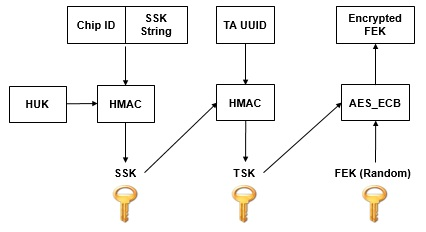 - SSK由hardware unique key(HUK)及Chip ID/SSK String做HMAC-SHA256所产生